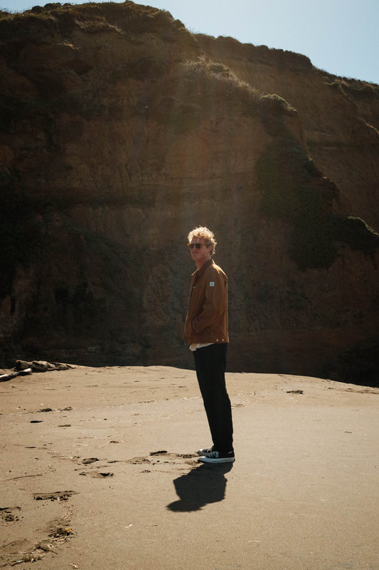 Our Winter Collection, Pacific Landing, marks the final stop on our westward journey... a return to the Bay and the feeling of home it carries. Inspired by foggy mornings, golden hillsides, and evenings where city lights meet the Pacific, it captures the quiet beauty of a California winter. Each piece is made to move with you... layered, lived in, and timeless. Photographed alongside friends on the coast we grew up on, this collection is a study of gratitude, place, and the spirit of coming home.